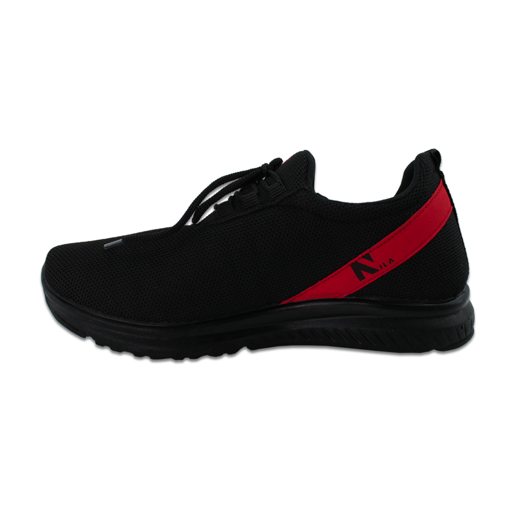کفش ورزشی مردانه نیلا کد1755 یکی از کفش های ورزشی ایرانی موجود در سایت مجموعه رنو است. این کفش ورزشی متناسب برای فعالیت های روزمره، پیاده روی، فعالیت های سبک و… است. این محصول دارای رنگ مشکی با زیره رنگ مشکی و خطوط جذاب قرمز رنگ است، و از قابلیت ست پذیری بالایی برخوردار است. شما می توانید این محصول جذاب را همراه با لباس های رنگ های مختلفی از جمله رنگ مشکی و خاکستری و حتی قرمز و زرشکی ست کنید.